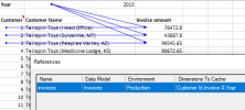 Here you have a basic report that displays the invoice amount for every customer from 2013.
