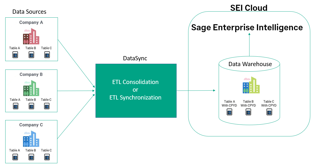 Scenario 3 - This hybrid scenario combines scenarios 1 and 2 where you will receive real-time data into SEI and you will be replicating data with DataSync using a Consolidation extraction.