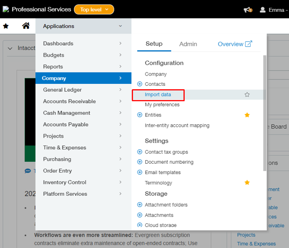 Sous Company, sélectionnez Import Data.