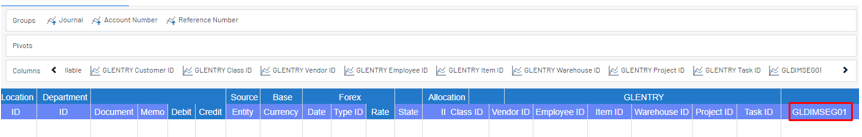 Afin de mapper les champs personnalisés, vous devez ajouter les nouvelles dimensions à toutes les tables liées dans la table GLENTRY :