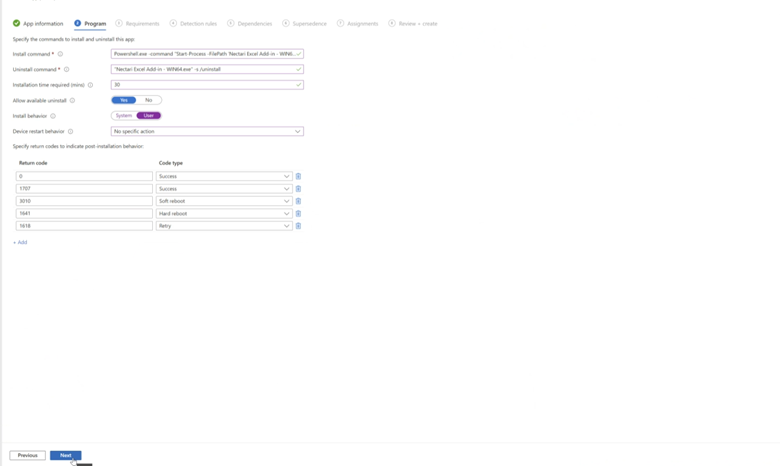 After you've reviewed and confirmed these settings, click Next to proceed to the next step in the application deployment process within Intune.