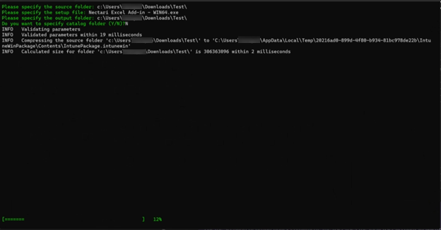 The completion of the package creation process may require an extended period. The resulting .intunewin file will be used in the next phase.