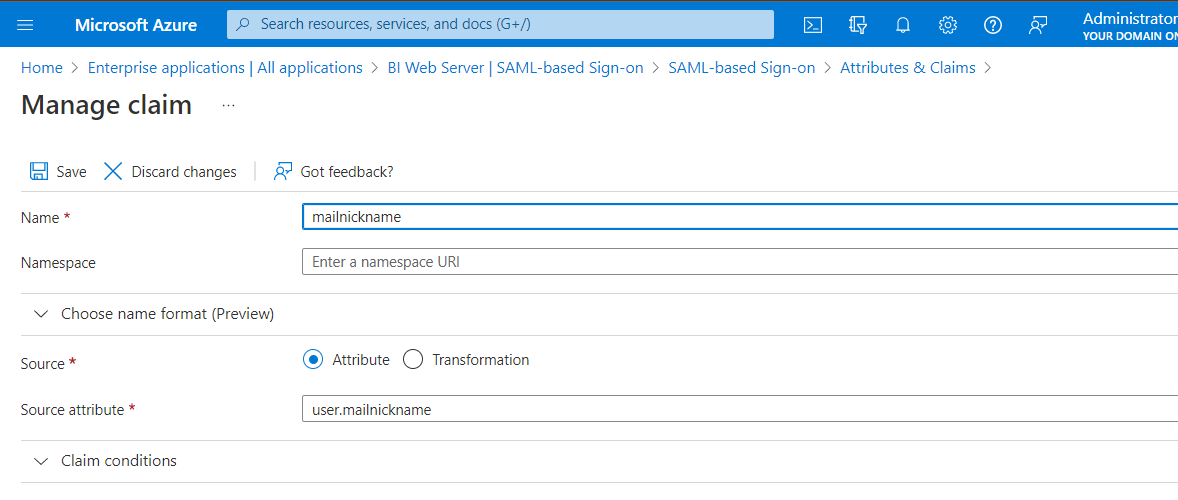 Here is an example where the name is mailnickname. More details on this setting can be found here.