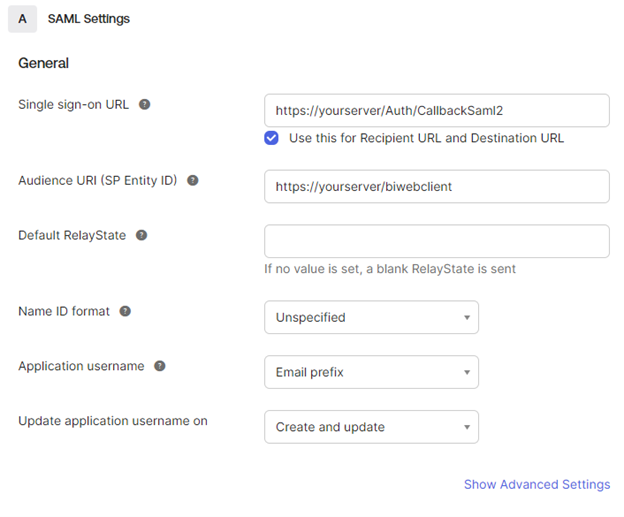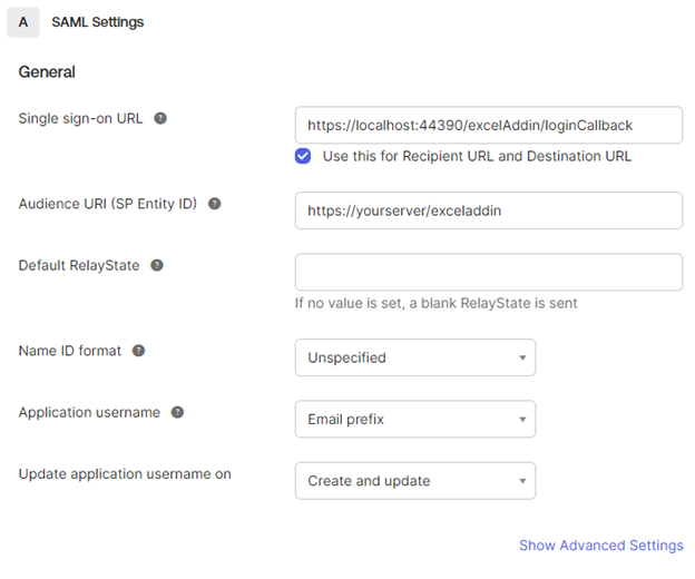 This topic provides step-by-step instructions on how to set up SAML 2.0 with Okta. These settings will be used for both Web Server and Excel Add-in. As Okta, does not allow multiple ACS Url in the same application. We will need to create two different applications for Web Server and Excel Add-in.