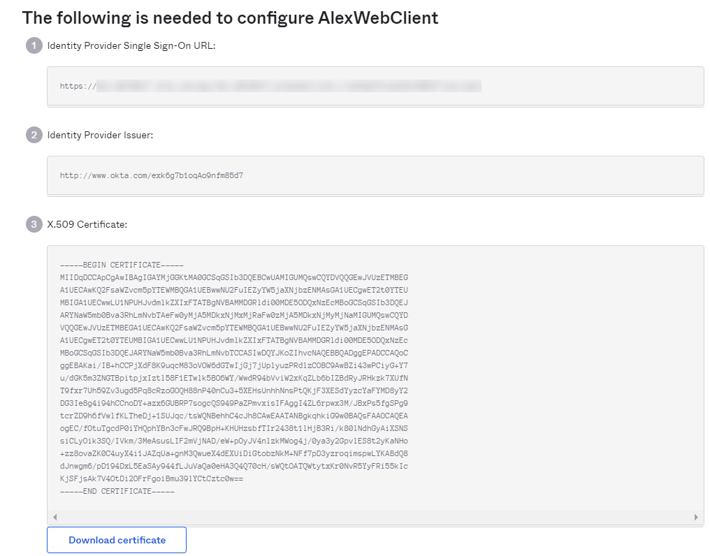 Take note of the Single Sign-On URL and Identity Provider Issuer (Entity ID).