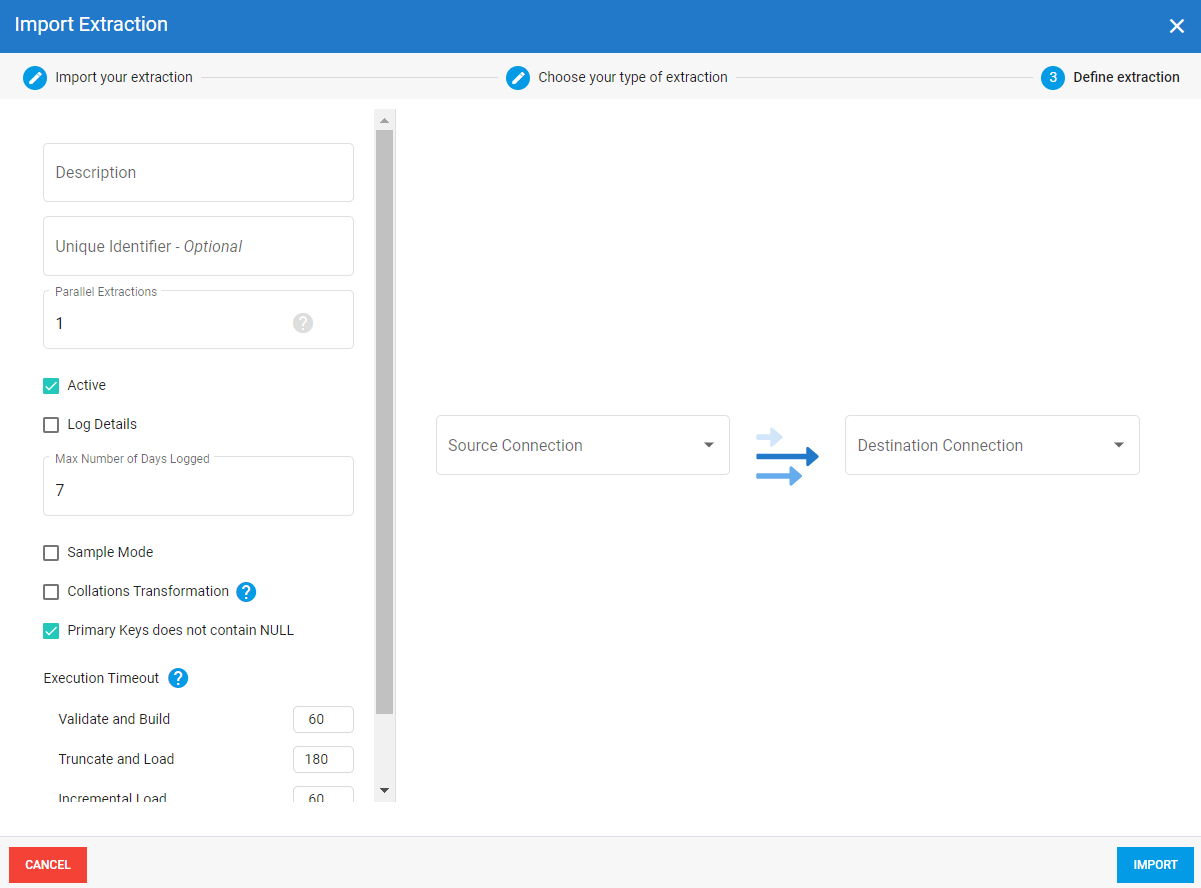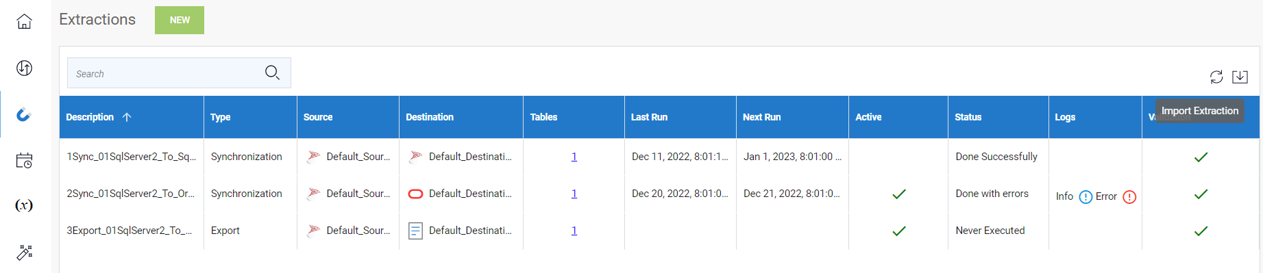 In DataSync, import the extraction (see Importing an Extraction for further details):