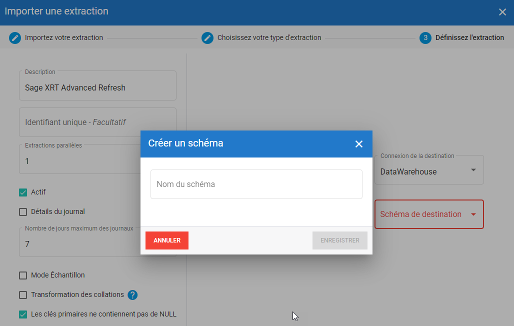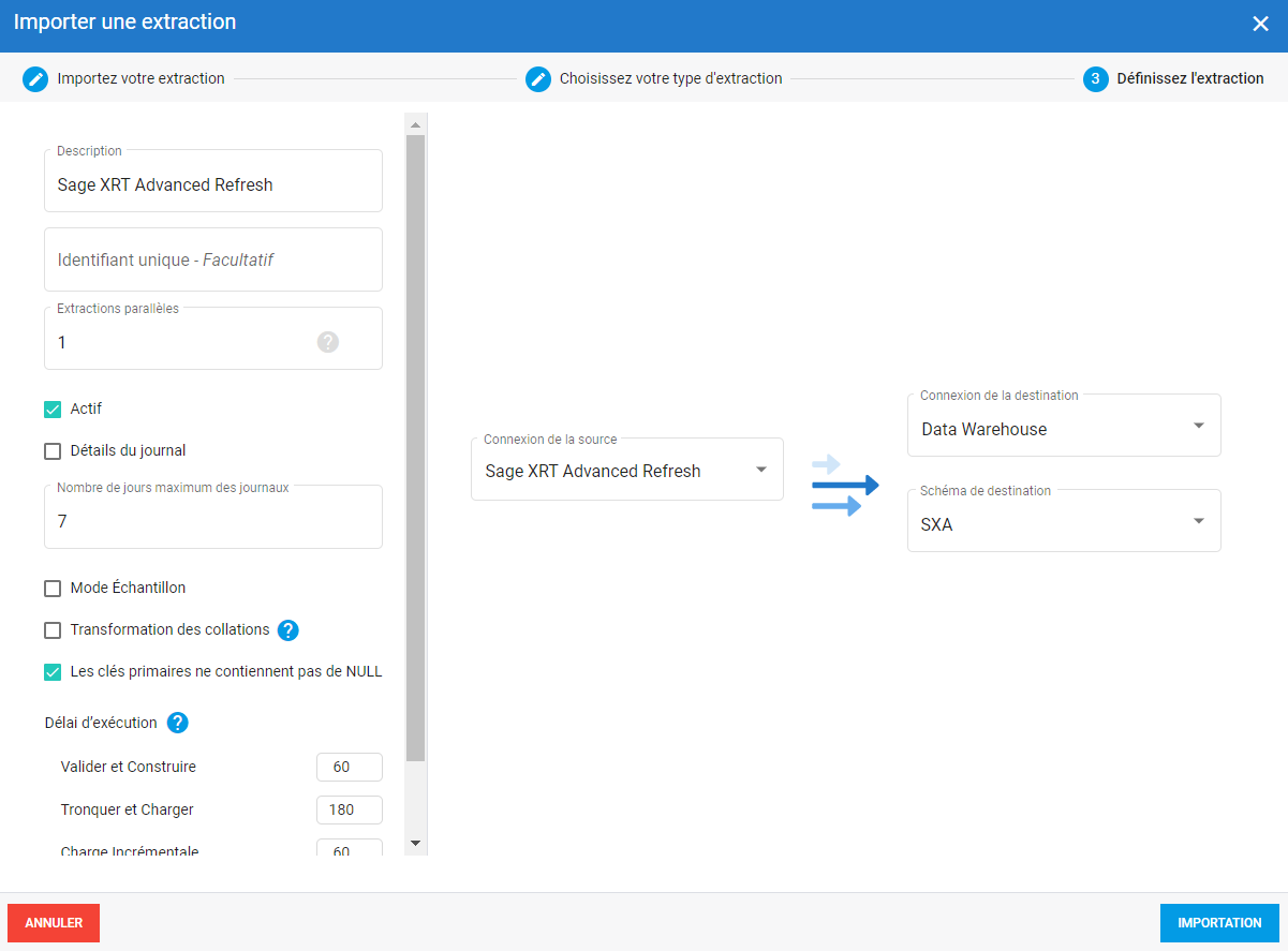 2 - Configurer l'extraction de rafraîchissement non incrémental