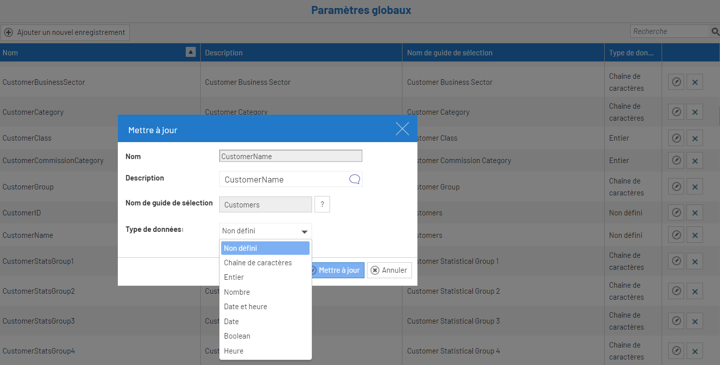 Type de données : Sélectionnez le type de données approprié dans la liste.