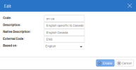 Basé sur : Si nécessaire, sélectionnez la langue utilisée comme base. Si aucune description n'existe dans le dictionnaire pour la langue sélectionnée, SEI récupérera la langue par défaut dans le menu Basé sur.