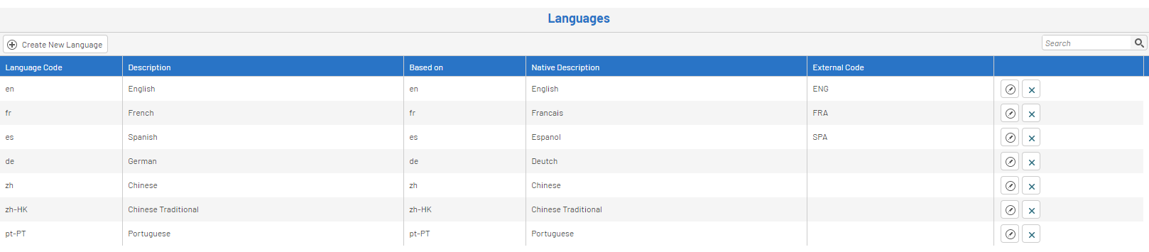 L'option Langues permet à l'Administrateur de configurer la liste des langues disponibles pour les utilisateurs.