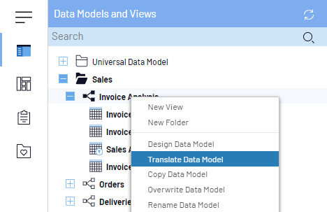 Dans l'onglet Modèles de données et vues, cliquez droit sur un modèle de données et sélectionnez Traduire le modèle de données.