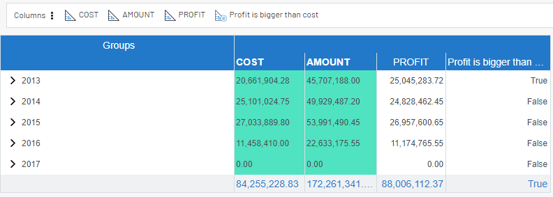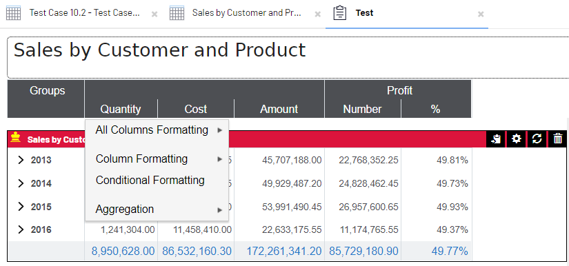 Pour appliquer une règle à un format de colonne ou de groupe, reportez-vous aux rubriques Appliquer une mise en forme conditionnelle à une colonne et Appliquer une mise en forme conditionnelle à un groupe.