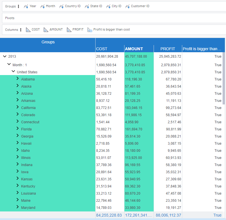 Vous pouvez personnaliser le style des colonnes et des groupes dans une feuille de calcul. Un style peut être appliqué à l'en-tête, au contenu et à la ligne de total d'un champ spécifique. Vous pouvez copier et coller le format d'un champ à un autre dans la même feuille de calcul ou dans une feuille de calcul différente. Le style appliqué pour être réinitialisé aux styles par défaut de la feuille de calcul. Certains styles ont la priorité sur d'autres.