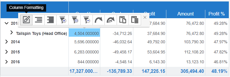Cliquez sur un champ dans la grille puis cliquez sur l'icône Formatage de colonne.