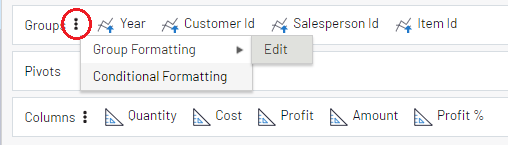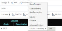 Cliquez avec le bouton droit de la souris sur un champ dans la section Groupes ou Colonnes et sélectionnez Formatage de colonne > Modifier.