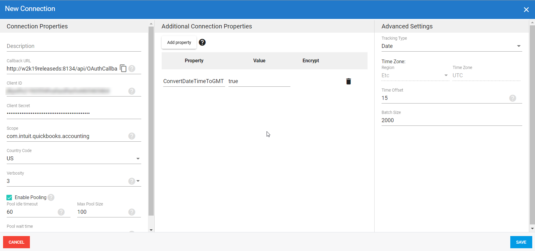 In DataSync, create a new source connection for Quickbooks Online:
