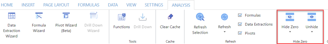 From the Analysis tab, select Hide Zero and then: