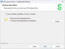 4. In the Database Type Selection screen, select a Location for the database files. Select the Server Defaults option so that the database server can load the files in its default location, OR click Change... to choose the appropriate location and click Next.
