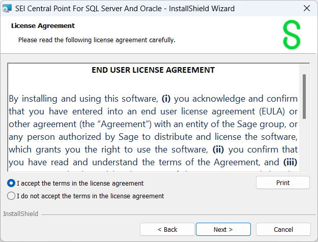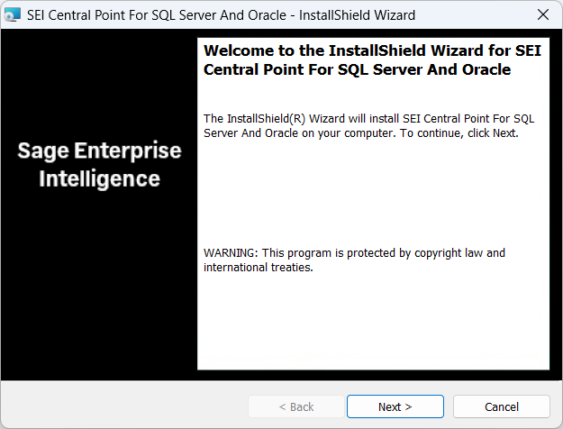 Run the application SEI Central Point for SQL Server and Oracle.exe and click Next.
