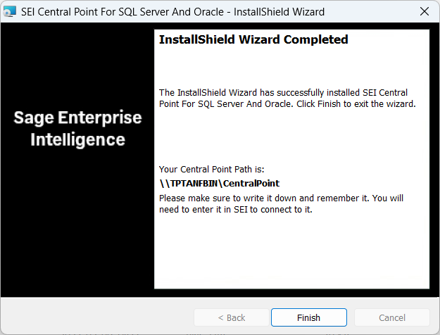 The Central Point package installs the main configuration components of the SEI application: the SEI database and the Central Point folder path.