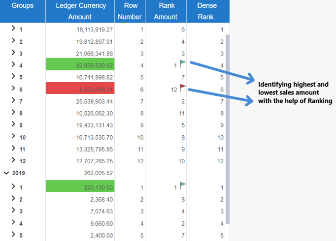 We can use LAG and LEAD functions to calculate many important KPIs that could be useful in deeper analysis. With lags and leads on the same row, it becomes easier to do calculations such as growth percentage of sales between two months. In the example below, we calculate Growth % in sales amount for Month 9 , i.e. 93.51%.