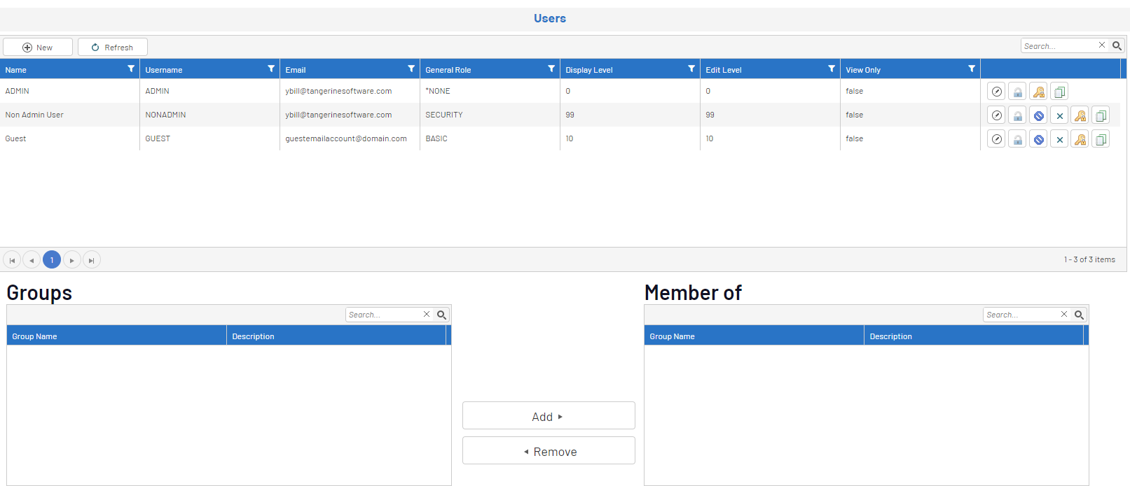 Users. A list of users will be displayed with their detailed information. The bottom section will display the Groups that the selected user is a Member of.