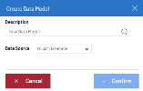 - In the Description field, enter the data model name and select the associated data source in the drop-down list (refer to Environments and Data Sources for more details).Note
