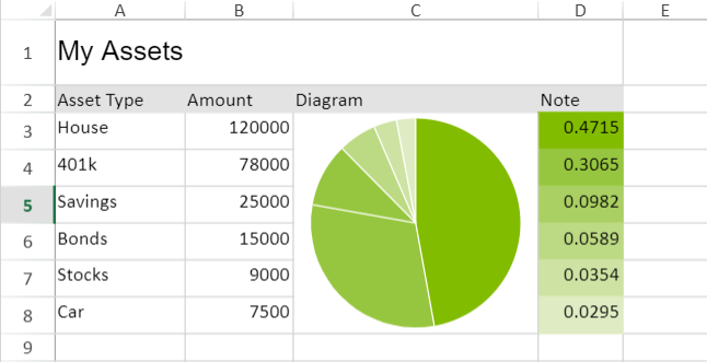 Copy and paste the cell as needed to finalize your pie sparklines.