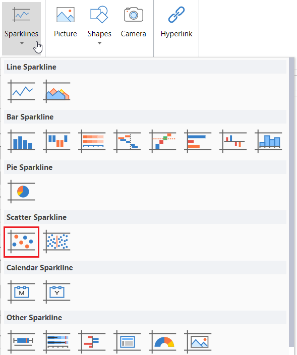 Click Sparkline and select the scatter sparkline under Scatter Sparkline from the list.