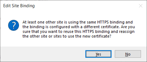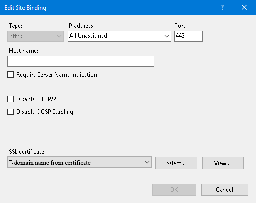 In the Edit Site Bindings window, under the SSL certificate section, you can either use the drop-down list or use the Select... button to choose the new certificate.