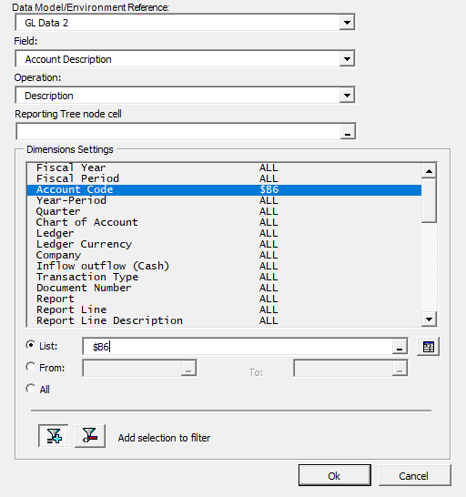 Si vous souhaitez filtrer les valeurs en utilisant un nœud d'arborescence de génération d'états, sélectionnez la cellule de référence que vous avez définie dans Arborescence de génération d'états dans le champ Cellule du nœud de l'arborescence de génération d'états.