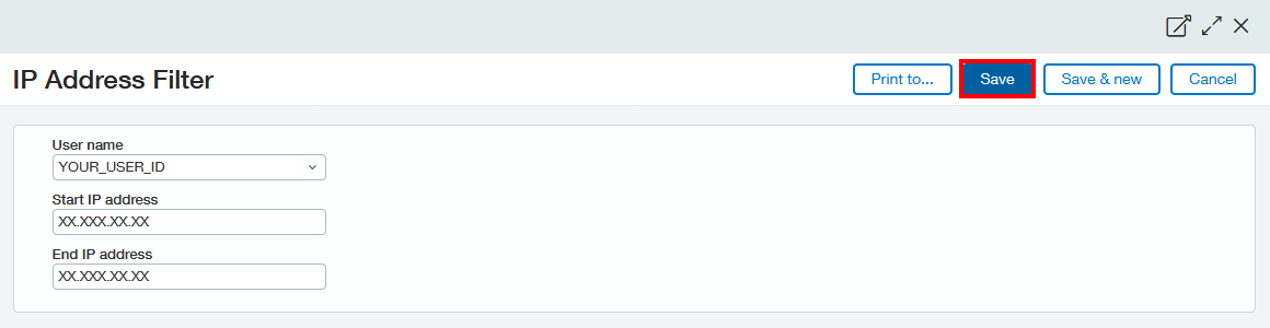 Dans les champs Adresse IP de départ et Adresse IP d'arrivée, entrez l'adresse IP fournie par l'équipe de SEI et cliquez sur Enregistrer.