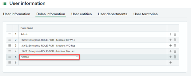 Cliquez sur une des lignes et sélectionnez Nectari dans la liste déroulante Role Name.