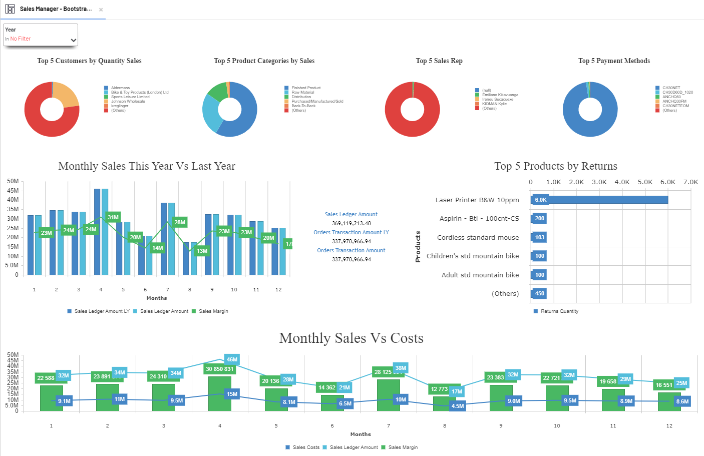 Views such as Worksheets, Charts, Gauges and Maps can be mixed together on the same Dashboard page, even if they are built from different Data Models.