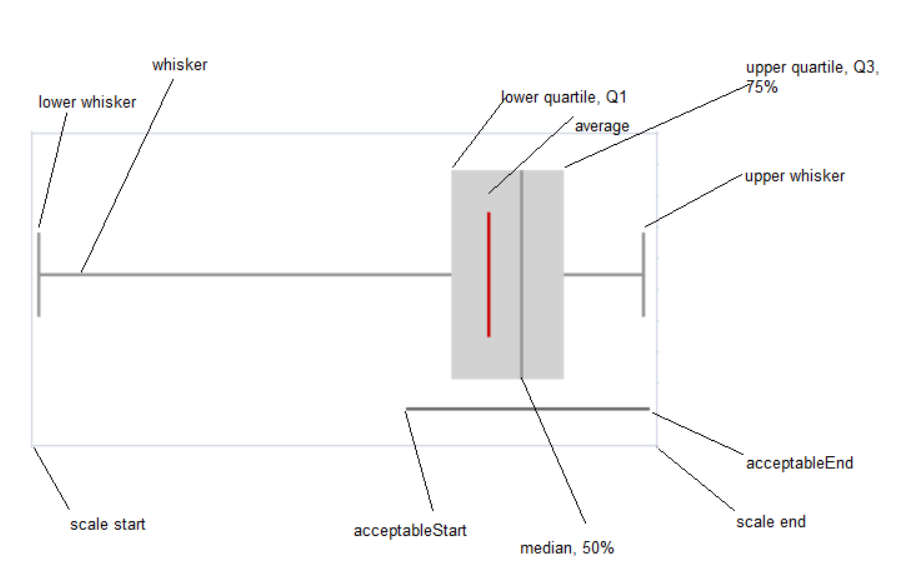 The box plot sparkline formula has the following syntax: =BOXPLOTSPARKLINE(points, boxPlotClass, showAverage, scaleStart, scaleEnd, acceptableStart, acceptableEnd, colorScheme, style, vertical) |