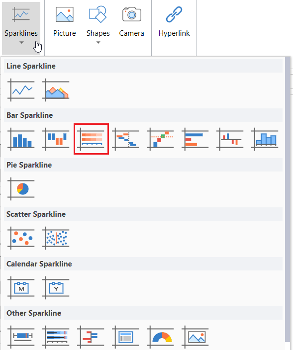 Click Sparkline and select the stacked sparkline under Bar Sparkline from the list.