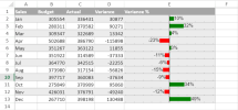 To create variance sparklines in the workbook: