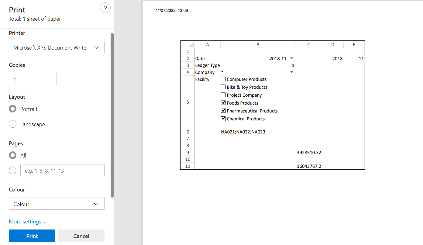 Exporting and Printing a Workbook