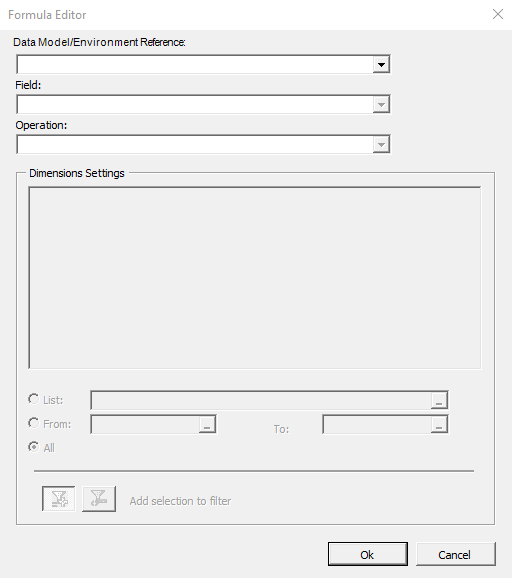 Cette section sert à filtrer les enregistrements utilisés dans les calculs pour le champ et l'opération sélectionnés. Vous pouvez entrer ces paramètres de filtrage pour autant de Dimensions que vous le souhaitez.