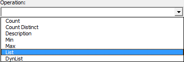 - Permet de récupérer la liste des valeurs du champ sélectionné. Il existe plusieurs façons d'afficher la liste dans Excel en fonction des choix effectués pour la méthode d'insertion de liste, l'orientation de la liste et les propriétés d'ordre des listes dans la fenêtre Configuration. Cette fenêtre apparaît lorsque l'option Liste est sélectionnée comme opération (voir figure ci-dessous).