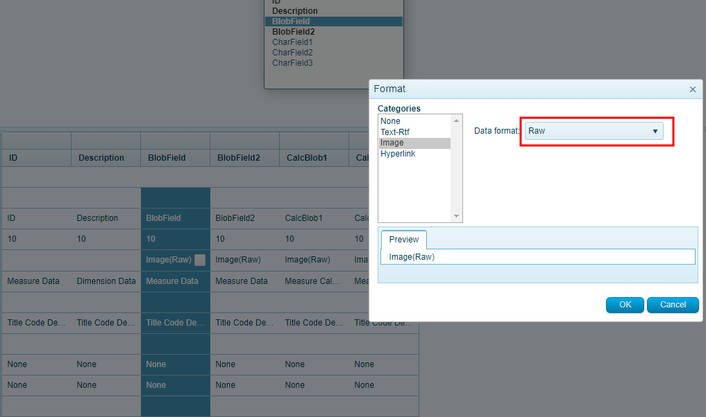 - In the Data format drop-down list, select Raw and click on OK.
