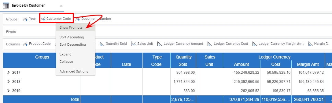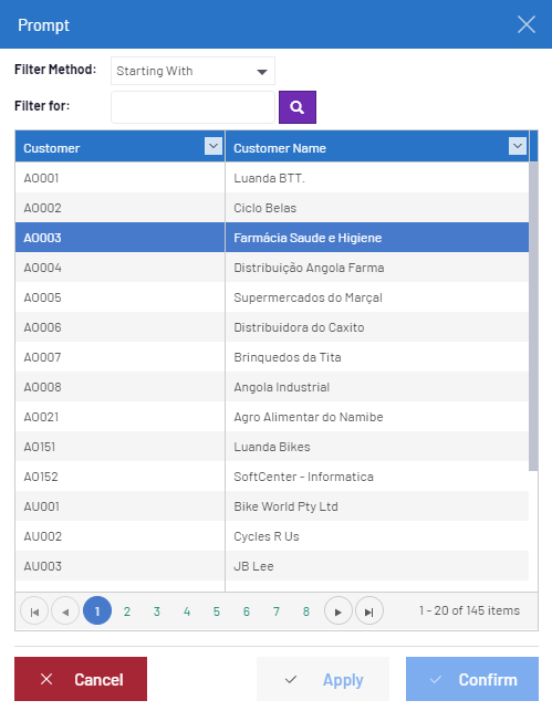 Using Prompts is a powerful way of filtering and selecting specific subsets of data, which will assist the user in accessing a list of all customers; displayed by Customer Code and Customer Name.
