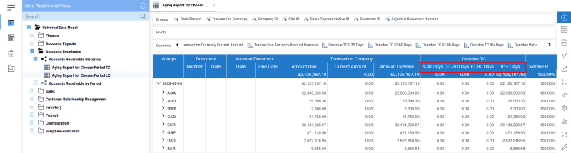 - Dans l'onglet Modèle de Données et Vues, développez les dossiers Modèle de Données Universel et Comptes Clients.