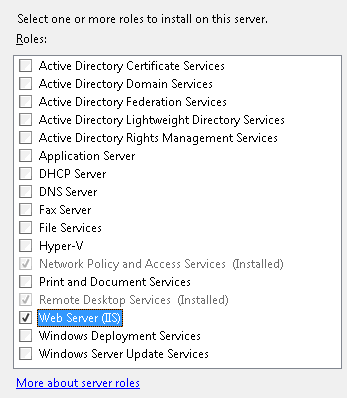 Si Microsoft IIS est déjà installé sur le serveur, assurez-vous que les Rôles cochés sur les écrans ci-dessous sont installés. Si IIS n'est pas installé, vous devez l'installer.