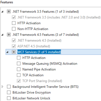 - Pour Windows 2012 Server, vérifiez que les éléments suivants sont installés :