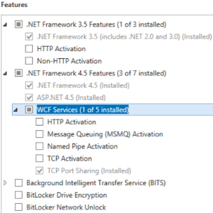 - Pour Windows 2016 Server, vérifiez que les éléments suivants sont installés :
