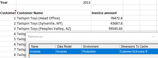 The invoice amount is a SEI formula that filters based on both year and customer ID. In this example, the reference configuration has been set to cache based on the year, customer ID and invoice number.