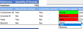 For example, imagine that you receive a cache optimizer recommendation to remove the year field from the cache as all formulas filter on the same year at the time of the analysis. But then, later on, multiple year values are added making it preferable to cache the year field. For reasons such as that, it is important to view the cache optimizer recommendations as useful hints rather than absolute truths.