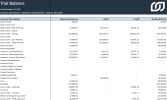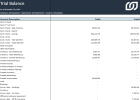 This trial balance sheet includes an Opening/Closing Balance and Period to Date Debit/Credit.