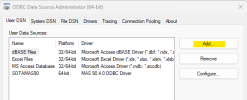 From the Microsoft search bar, open the ODBC Data Source Administrator (64-bit).